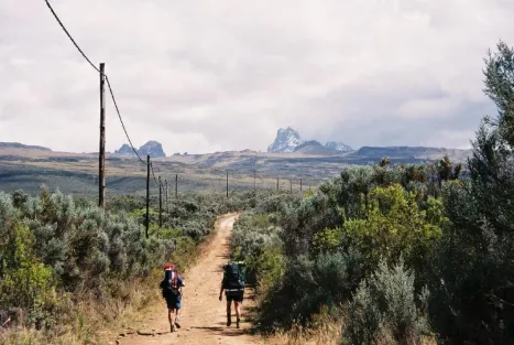 Ons is meer konvensioneel in 2023, en vroegoggend laai George, ons aangewese Uber bestuurder, ons by Mad Vervet Backbackers in Nairobi op met sy gebleikte pampoengroen Corolla sonder ventilasie. Wanneer ons die hoogland plato bereik, sien ons vir die eerste keer die pieke van Berg Kenia, al aan ons regterkant, soos ons om die weste kant van die nasionale park ry. Vier ure later laai hy ons by Sirimon hek af.